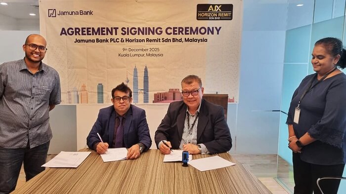 যমুনা ব্যাংক পিএলসি সম্প্রতি মালয়েশিয়াভিত্তিক হরাইজন রেমিট এসডিএন বিএইচডি এর সাথে একটি বৈদেশিক রেমিট্যান্স ড্রইং এগ্রিমেন্ট স্বাক্ষর করেছে, যা ব্যাংকের বৈশ্বিক রেমিট্যান্স নেটওয়ার্ক সম্প্রসারণে একটি গুরুত্বপূর্ণ মাইলফলক হিসেবে বিবেচিত হচ্ছে। এই কৌশলগত অংশীদারিত্বের মাধ্যমে উভয় প্রতিষ্ঠান সমন্বিত সহযোগিতা ও উন্নত সেবার মাধ্যমে আন্তঃসীমান্ত রেমিট্যান্স কার্যক্রম আরও জোরদার করবে।